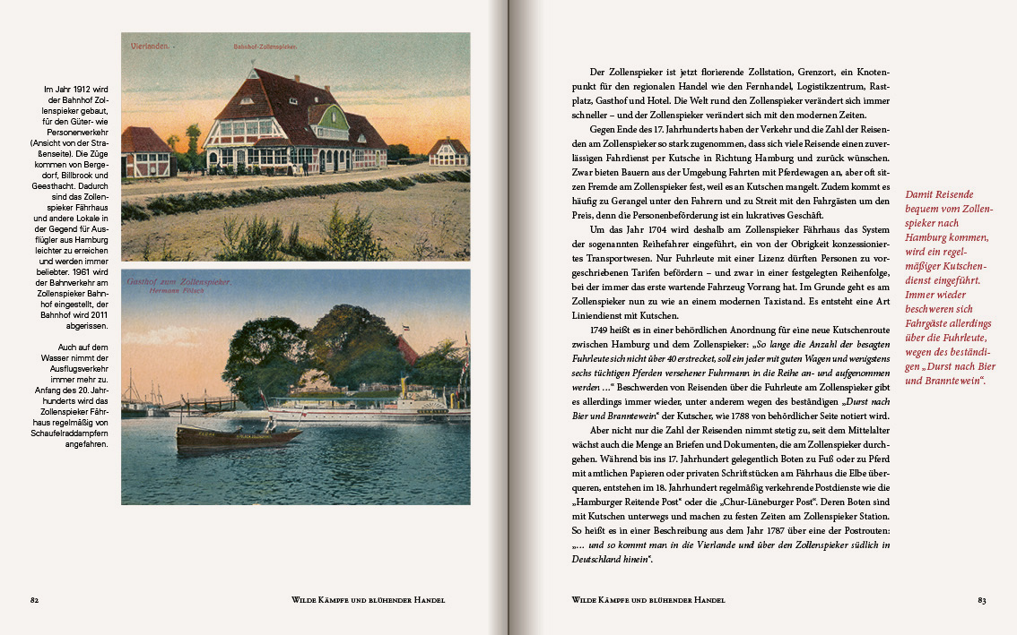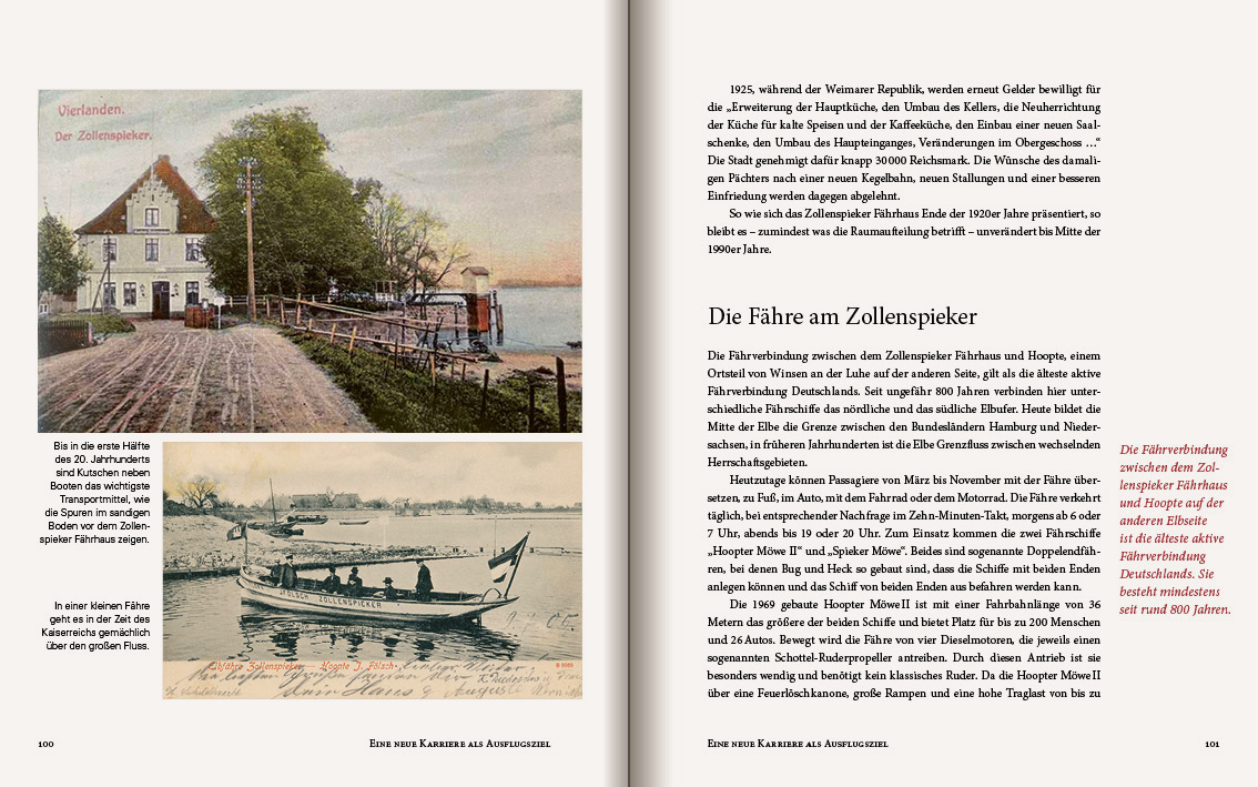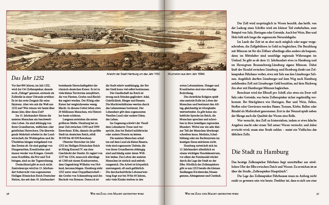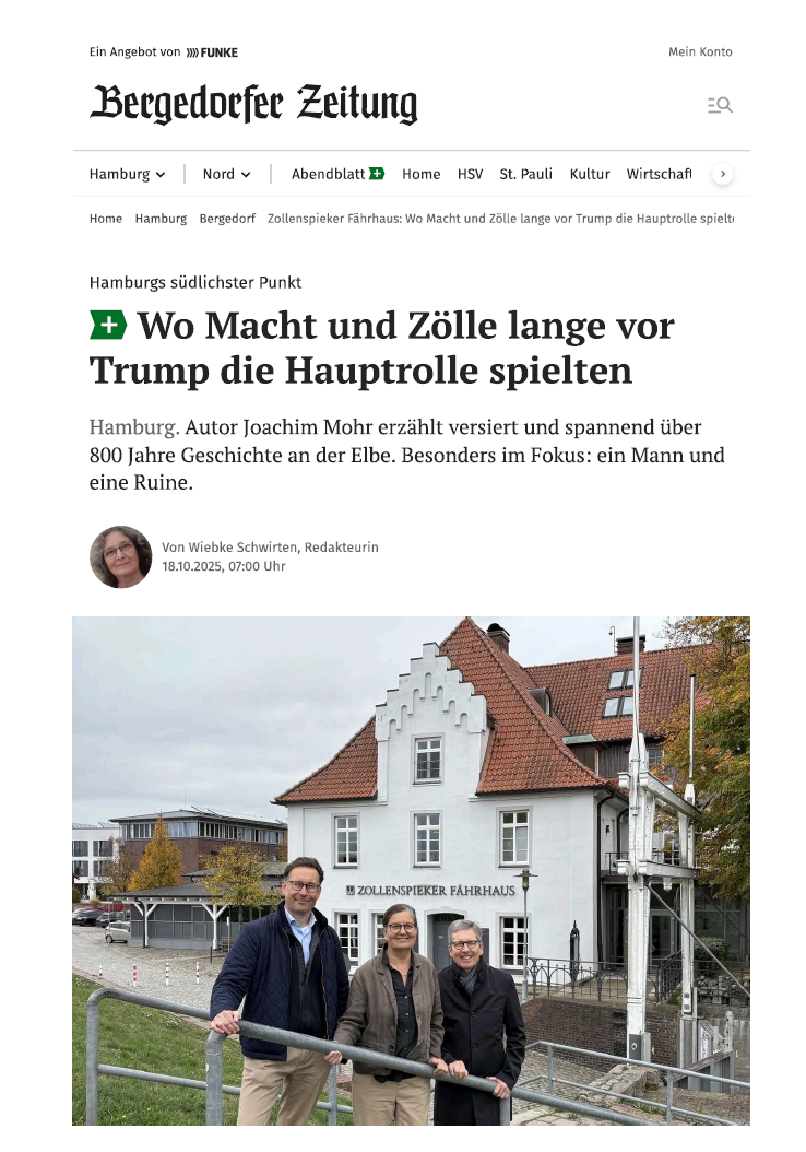 „Nur wer lokale und regionale Geschichte kennt, kann die Welt verstehen. Aber beim Zollenspieker Fährhaus geht es nicht nur um Zölle, Kriege und Macht, sondern auch um Schifffahrt, Hightech im Mittelalter, Kutschentaxis, Erdbeer-Kuren, den Kampf gegen Sturmfluten, wilde Feiern und Randale.“