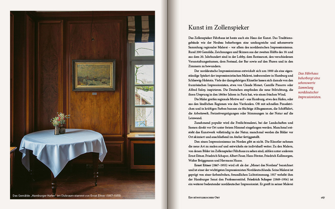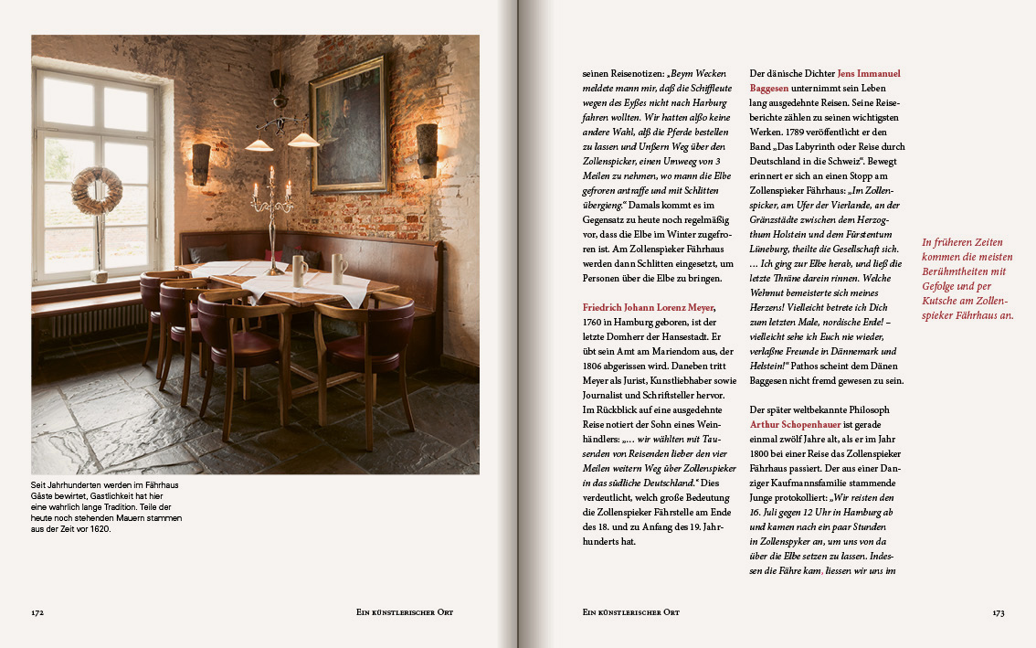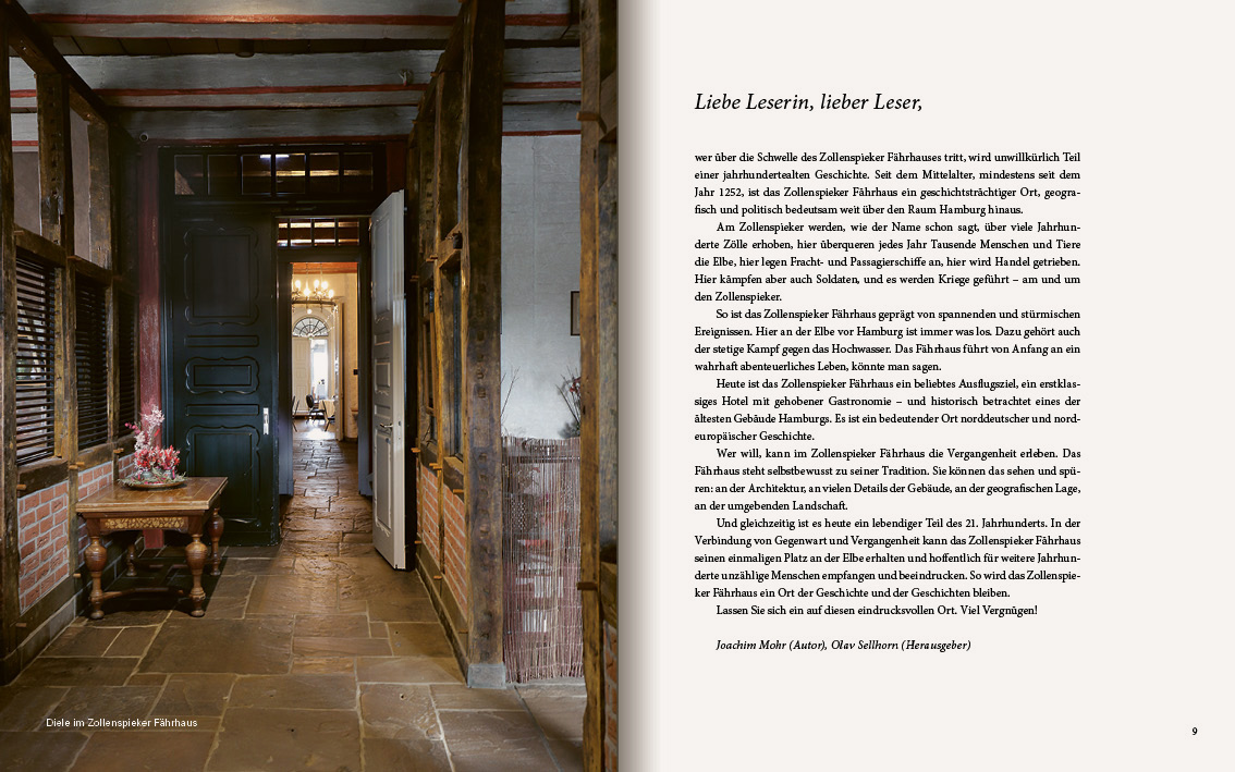 Am südlichsten Punkt des heutigen Hamburgs, direkt an der Elbe, liegt das Zollenspieker Fährhaus. Blutige mittelalterliche Kämpfe, berühmte Gäste, Zölle und Schiffe, europaweiter Handel, prunkvolle Feste, dramatische Fluten – der Ort war 800 Jahren lang ein bedeutendes Zentrum von Handel, Macht, Genuss und Kultur.